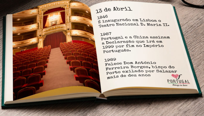 1846 – É inaugurado em Lisboa o Teatro Nacional D. Maria II, integrado nas comemorações do 27º aniversário da Rainha, e parte de um esforço para aumentar a cultura do povo Português.
