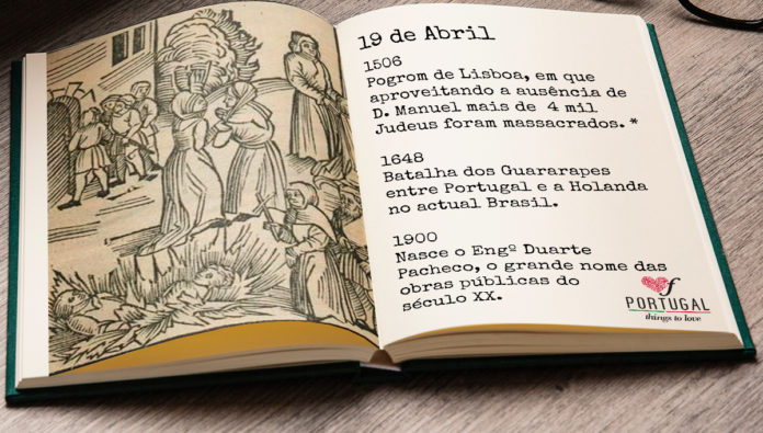 1506 –Massacre de Lisboa de 1506, Matança da Páscoa de 1506, Pogrom de Lisboa, os nomes são vários, mas o resultado é o mesmo. Aproveitando uma ausência do tolerante Rei D. Manuel I, monges Dominicanos instigaram uma multidão multinacional a uma matança de Judeus que durou três dias e matou mais de 4 mil pessoas.